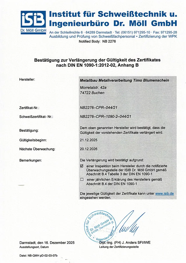 Zertifizierter Betrieb nach DIN EN 1090